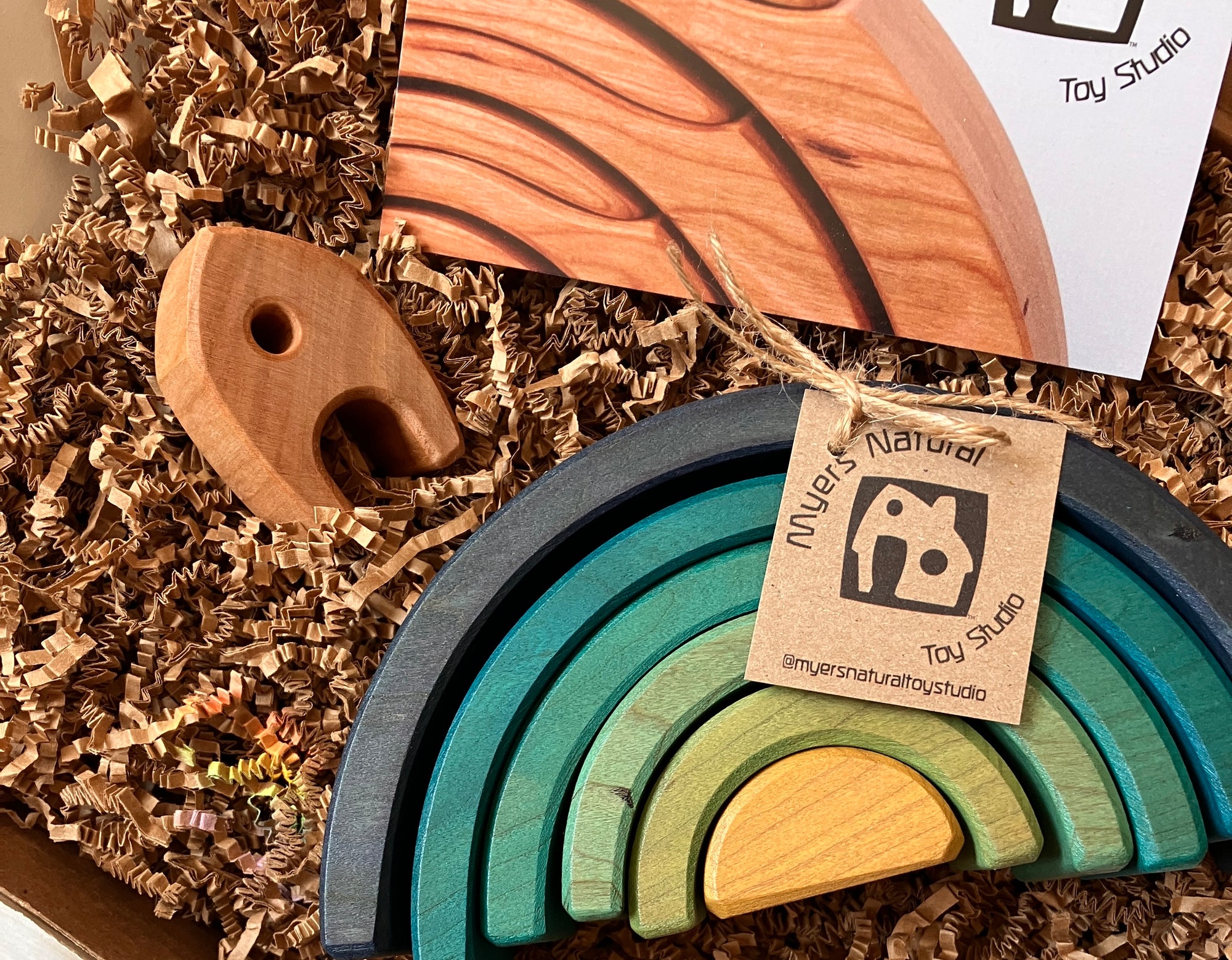 We noticed the quality in the Myers toys right away. The unique pieces that they make are very well done! The colours, the finishes, the attention to detail, it's all very obvious. We've had their products for more than 4 years, we use them daily and they are still in excellent condition.